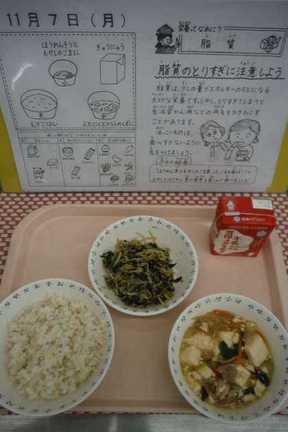 「ぶたにくととうふのくずにが食べやすくおいしかったです。今日は,体の調子をととのえる食べ物が多いので,秋にぴったりでした。ありがとうございます。」(6年児童)