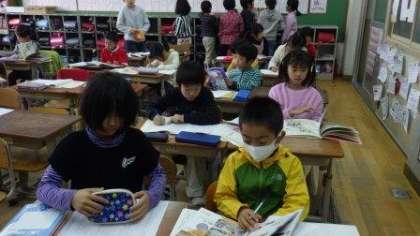 班で学習したり,学校図書館の本を使って調べたりしています。