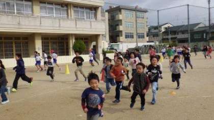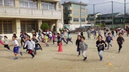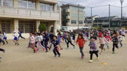 12月のマラソン大会に向けて,今日から業間マラソンを始めました。今日は途中から小雨が降ったので,時間を短縮して行いました。