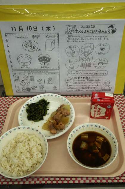 「あかだしの味がこすぎず,おいしかったです。けいにくのてりやきはごはんと合い,とてもおいしくバランスがよかったです。いつもありがとうございます。」(4年児童)