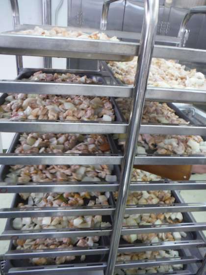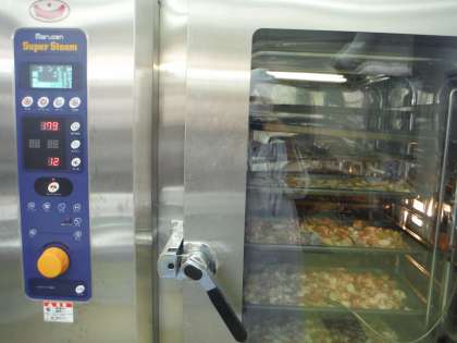 鶏肉のてり焼きは,スチームコンベクションオーブンを使用した新献立でした。