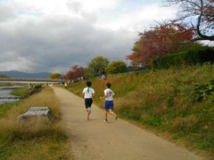 鴨川河川敷を一生懸命走りました。たくさんの方の応援のおかげで,選手たちは大きな力をもらって走りぬくことができたと思います。応援・ご協力ありがとうございました。