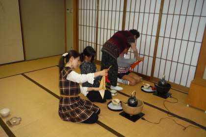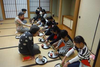 5年生は,初めて風呂釜を使って盆略点前を行いました。