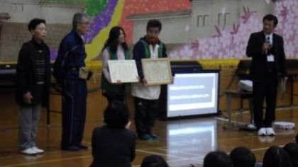 学習発表会がいよいよ始まります。校長先生のお話の後,いつも登下校を見守ってくださっている「二条城北小学校安心安全見守り隊」の皆様に,「未来の京都まちづくり推進表彰状」と感謝状を贈呈しました。