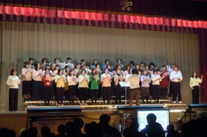午前の部の最後は,PTAコーラスの皆さんによるコーラスの発表でした。子どもたちも歌に合わせて手拍子をして,楽しく聴きました。