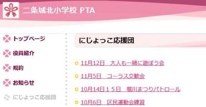 二条城北小学校PTA「にじょっこ応援団」Webページが,随時更新されています。
