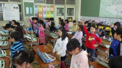 曲の鑑賞をしたり,「きらきらぼし」をドレミで歌ったりしています。楽しいリズムに思わず体を動かす子どもたちもいました。