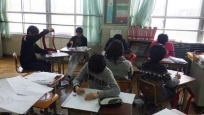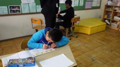 わかたけ学級は,個別で国語の学習をしています。6年生は,図画工作で版画の下絵をかいています。