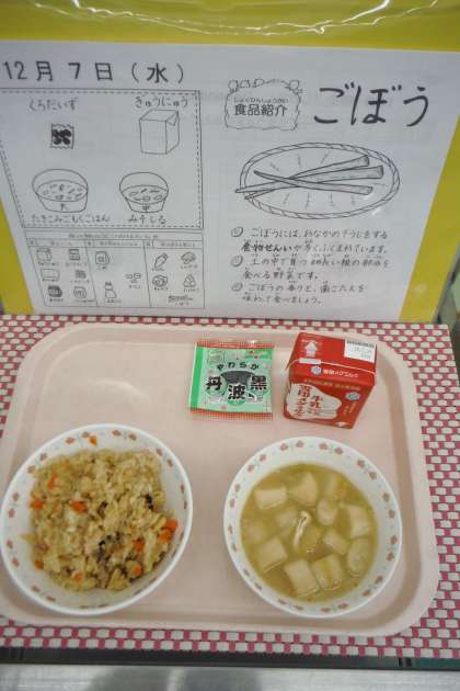 「私は,今日のたきこみごもくごはんがおいしかったです。たくさんの具材が入っていて栄養も満点だなと思いました。また作ってください。」(6年児童)