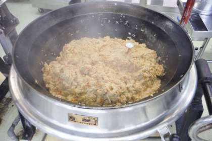 今日は,非常食として学校に保管しておいた,米・乾物・缶詰などを使用して給食室で炊き込みご飯を作りました。