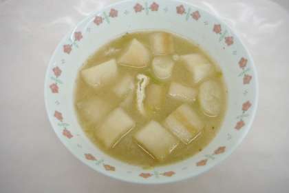 「おいしかったのは,みそしるです。なぜかというときりふのふわっとしたやわらかい食感とごぼうのかたくもなくやわらかくもなくておいしい感じと,あぶらあげも味がしみていておいしかったです。また作ってください。」(5年児童)