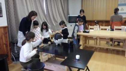 二条中学校でクリスマス茶会が行われています。本校の子どもたちも参加させていただきました。掛け物や花入れ,茶碗,お菓子などに季節のものが使われており,子どもたちがお茶席を楽しんでいました。