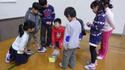 2年生が生活科「あそんでためしてくふうして」で作った遊びに,1年生を招待して「わくわくフェスティバル」を行いました。1年生に楽しんでもらえるように,遊び方やルールを優しく教えていました。
