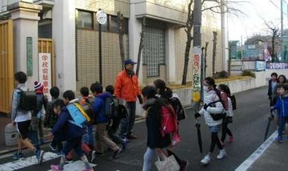 登校の様子をスクールガードリーダーの方に見守っていただきました。