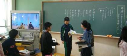 6年生は,狂言の映像をみながら,学習を進めています。4年生は伝統産業について調べています。