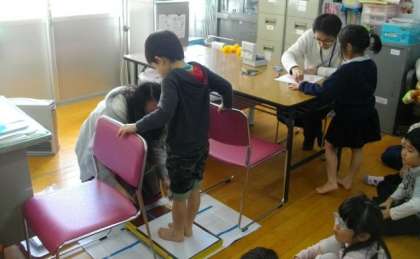 1年生が足型調べをしています。