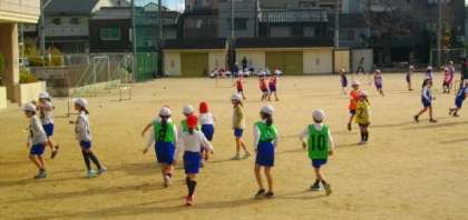 2年生が体育でサッカーをしています。
