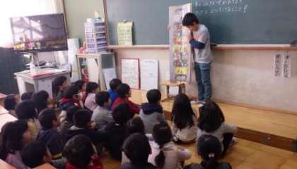 読書週間の取組で,図書委員会の児童が1〜3年生の教室で読み聞かせを行いました。