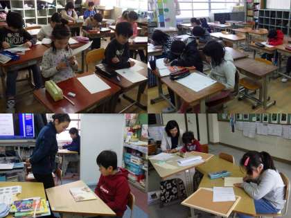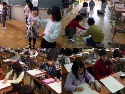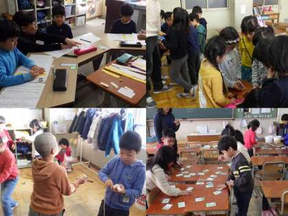 午前中にチャレンジ学習を行ったところ,たくさんの子どもたちが参加しました。冬休みの宿題や復習プリントをしたり,福笑いづくりやカルタなどの遊びをしたりしました。