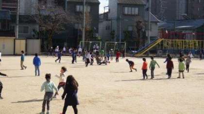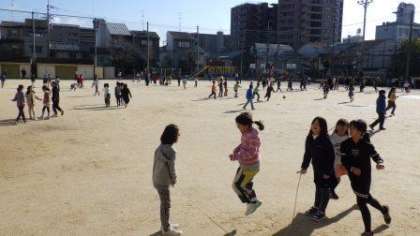 運動場に子どもたちの元気な声がもどってきました。水たまりが少しありましたが,なわとびやおにごっこなどをして楽しく遊んでいます。