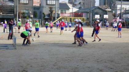 自分のチームの攻め方や守り方を工夫したり,相手チームに応じた作戦を工夫したりしながらサッカーを楽しんでいます。