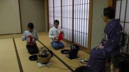 3月のひな祭り茶会に向けて,お点前などの稽古をがんばっています。