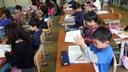 国語の学習をしています。ノートに書いたり,グループで発表会をしたりしました。また,まとめテストもしています。
