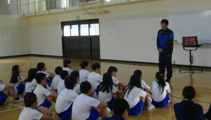 全体会では,校歌斉唱のあと,生徒会による二条中学校の学校紹介があり,その後,グループに分かれて数学・美術・体育の授業を体験しました。