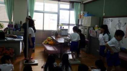 今日は4年生が発育測定を行っています。