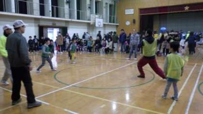 地域の方が,本校体育館でソフトドッジボール大会を行っておられます。たくさんの子どもたちが,友達や地域のみなさんとチームをつくって参加しています。