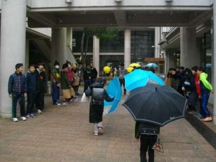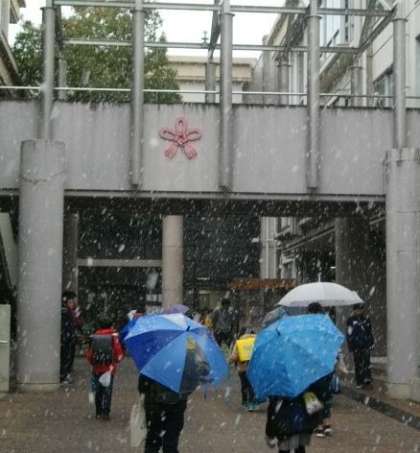 雪がちらつく寒い朝になりました。今日は6年2組のお友達が声をかけてくれました。