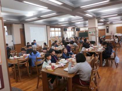 1年生は,初めての交流給食のランチルームということもあり,少し緊張している様子でした。そんな緊張した様子の1年生に6年生がやさしく声かけをしている様子がとても素敵でした。