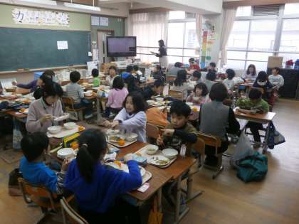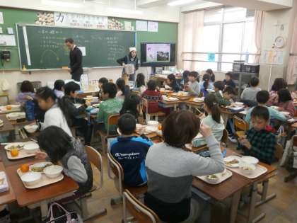 3年生が,地域の方から昔の話を聞いた後に,教室で一緒に給食を食べました。その後の昼休みも一緒に楽しく過ごしてくださいました。