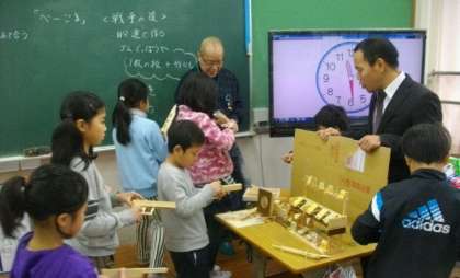 地域の方々にお世話になり,昔のお話を聞いたり,昔の遊びを体験したりしました。堀川商店街の近くに,氷屋さんやお魚屋さんがあったお話を聞いたり,昔のお札や切符を見せてもらったりするなど,貴重な体験ができました。