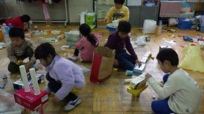 20日(月)1年図工「はこでつくったよ」