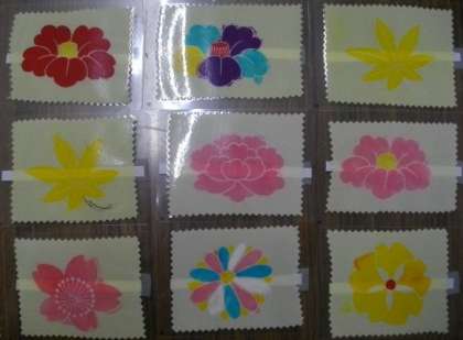 先日4年生を対象に開催していただいた「伝統産業見本市」で,子どもたちが「手描き友禅」体験をしました。今日は,そのときにお世話になった地域の方が,それぞれの作品を一つ一つを丁寧にラミネート加工していただき,もってきてくださいました。ありがとうございます。