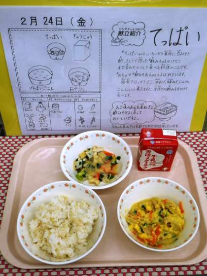 「てっぱいのソースがあまずっぱいあじがしておいしかったです。またつくってください。」(1年児童)