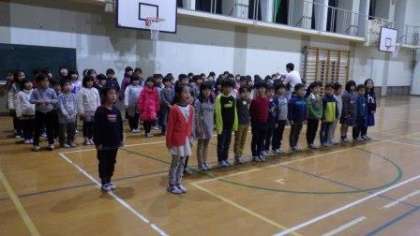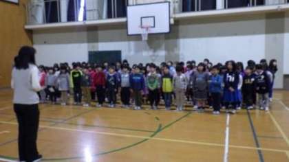 「6年生を送る会」で,歌と言葉で卒業のお祝いをします。学年で練習しています。