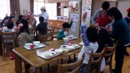 今日は草の芽学級がランチルームで給食を食べました。ちゃんぽんが人気で,たくさんの子どもたちがおかわりをしたいと手を挙げていました。
