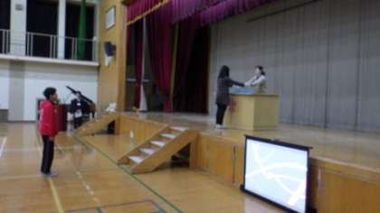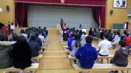 体育館で6年生が卒業式練習をしています。今日は卒業証書授与の練習をしています。動きをしっかりと見て,確認しながら練習しています。