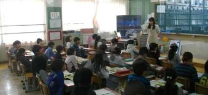 4年生は,国語で音読をしています。保健室では,1年生が体重測定をしました。