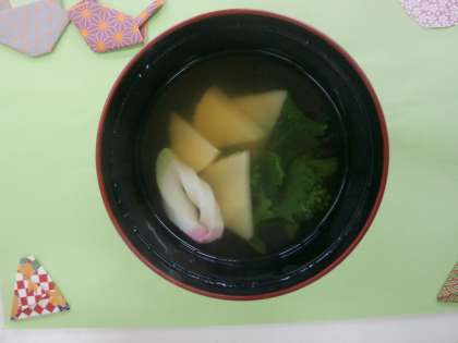 かまぼこを飾り切りしたり,季節の食材の菜の花をゆでて具材にしました。