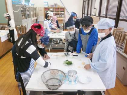 6年2組が1・2校時に家庭科室で吸い物作りをしました。