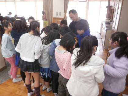 休憩中も京都市茶業青年会の皆様に,子どもたちがたくさん質問したり,お茶の香りを確認していました。