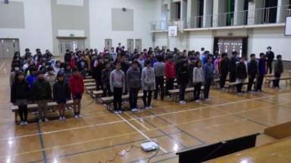 昨日から,5・6年生が一緒に卒業式の練習をしています。今日は「門出の言葉」を中心に練習しました。
