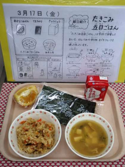 「たきこみごもくごはんがおいしかったです。わけは,わたしのすきな物がたくさん入っていたからです。」(3年児童)