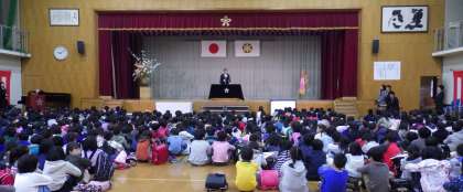 さて,始業式では,みなさんが楽しく学校生活を送り,そして,立派な小学生になれるように,2つのお話をします。