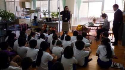 今日は4年生が発育測定をしています。