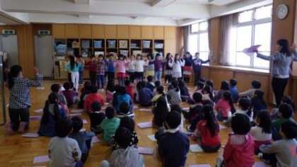 学年みんなで「手と手と手と」の歌を,元気に楽しく歌っています。
