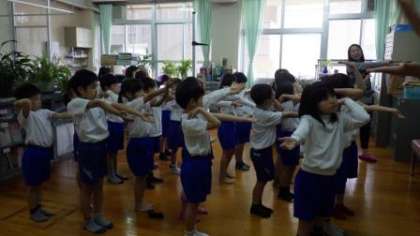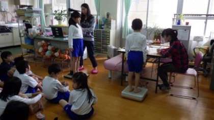 今日は,2年生が発育測定をしています。四肢の検査の練習もしました。